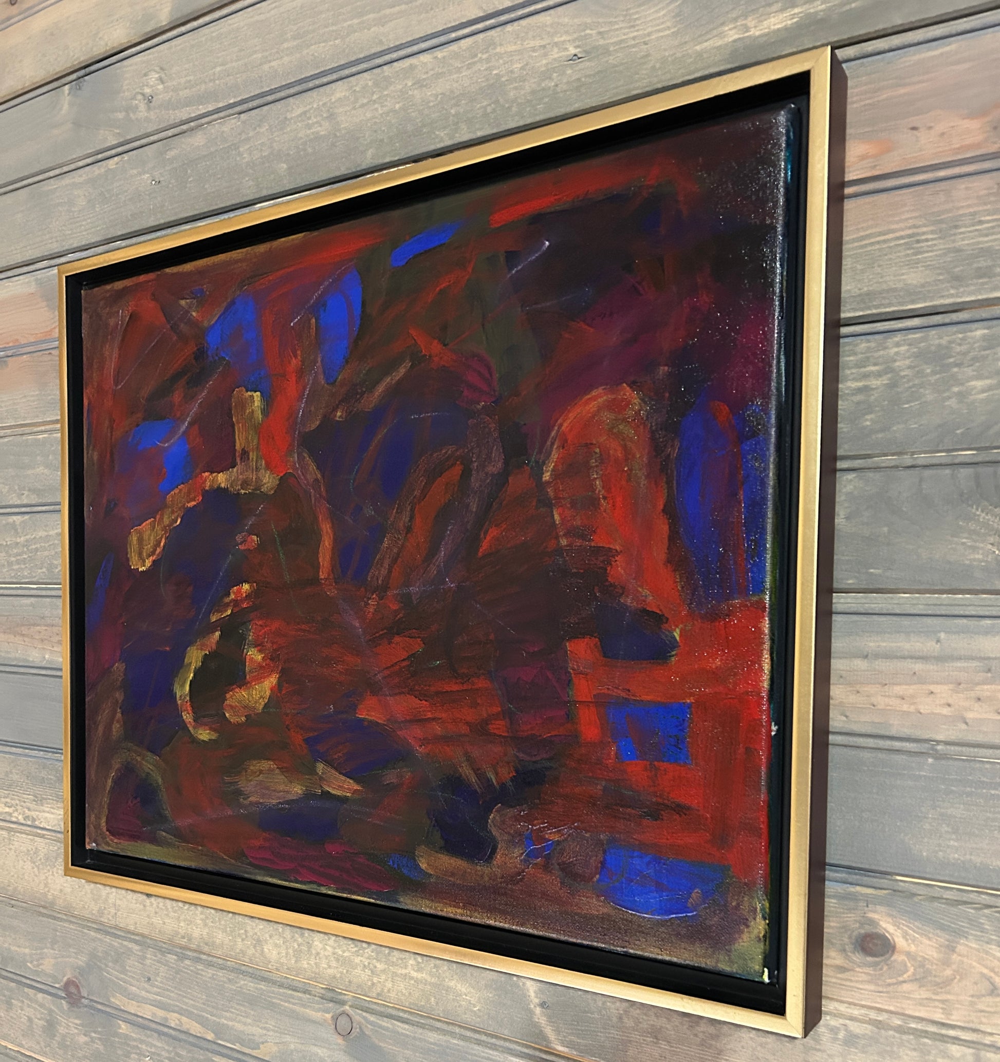 Framed (Wood)-Signed, Dated, and Titled on the back of the painting.